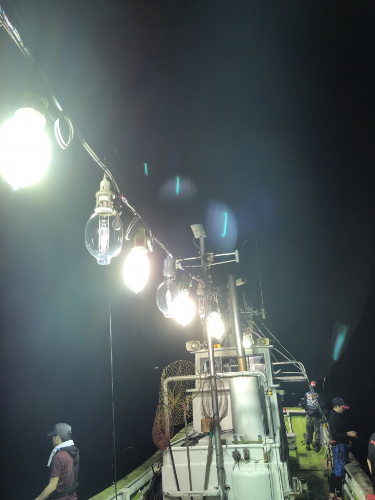本来であれば、次第に集魚灯にベイトが集まり、それにつられてイカの棚も浮いてくるのですが、当日は前日までの雨の影響で上潮が水潮気味だったからなのか、棚が浮いてくることはありませんでした。