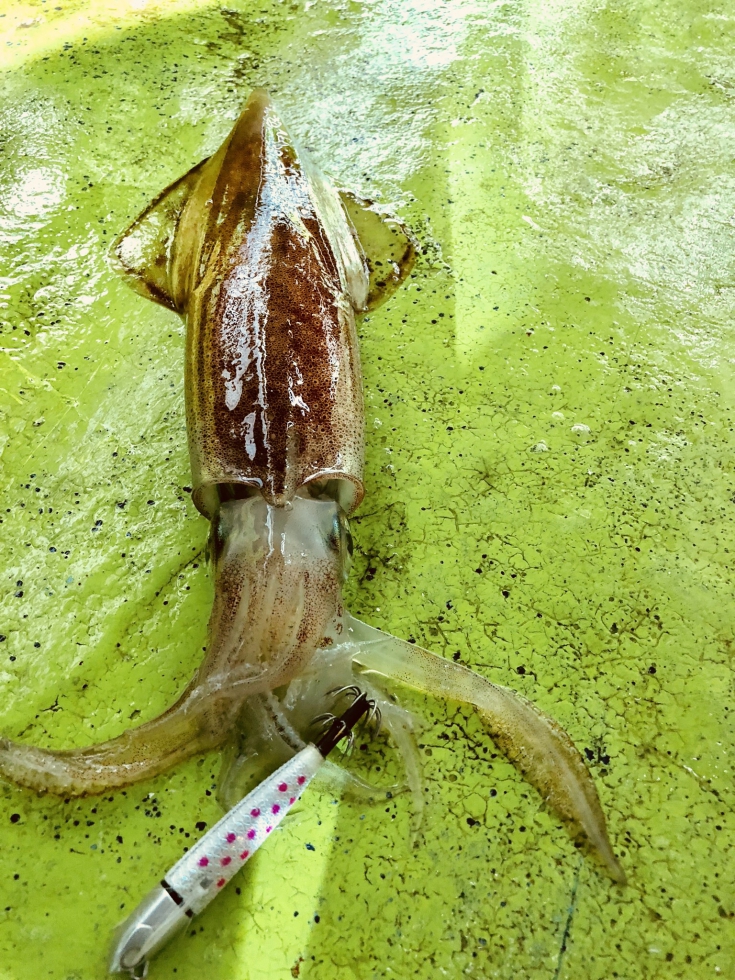 レギュラーサイズはもちろんですが、【ダイケン】と呼ばれる大型ケンサキイカが釣れるのはこのエリアの魅力ですね♪