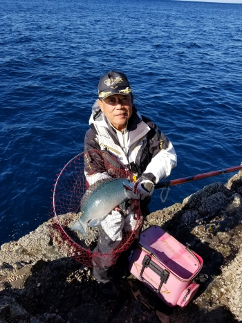 私ならまず朝一は誰よりも早く仕掛を放り込みたい気持ちで一杯なのですが、江頭さんは釣りばかりに気をとられず、その日一日が楽しく釣りができることをモットーとしており、流石、磯釣りを極めた名手は心にゆとりがあるなぁ~と改めて感じた次第です。