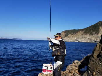 華麗な竿さばきでグレを寄せてくる江頭インストラクター