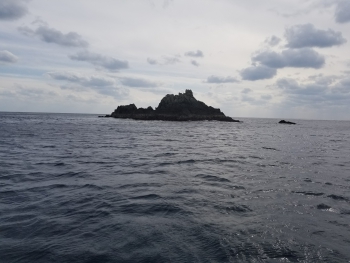 嵯峨の島周辺の磯へ渡れたらと期待していたのですが、3連休ということで他船が既に嵯峨の島の磯へ全て釣人を上げており、残念ながら手前にある島山島まで戻り、江頭さんと二人で磯上がりしました。