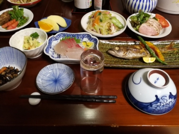 浜辺民宿での豪華な夕食