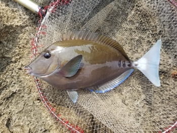 この判断が吉となり、入れ食いとはならないまでも、退屈しない程度に40cmクラスのイサギが釣れ、おまけに小型の真鯛も釣れ、納竿としました。