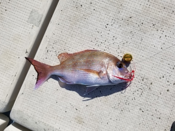 しかし、巻いては落としを繰り返し、一生懸命頑張ってはみるものの、あいにく、鯛の活性は低く、何とか1枚だけ釣り上げ、終了となりました。