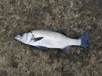 いきなりのことで面食らいましたが、ぎこちないやり取りの末、50cm弱のヒラスズキでした。