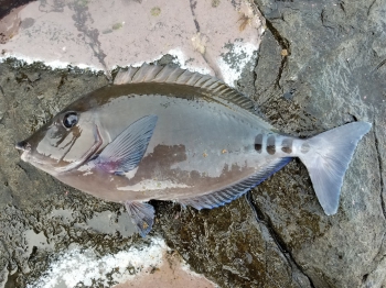 次はバラさないと浮かし上げてきたのは残念ながら磯釣りではド定番のサンチャン(サンノジ)でした。