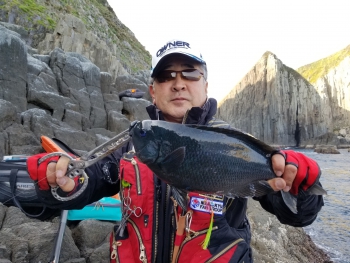 私は干潮から満潮へ再び動き出すだろうと潮に期待しこの磯で粘ってみますが、40cmまでの口太を数匹追加しただけで、夕方の見回りで瀬変わりをすることに。