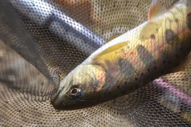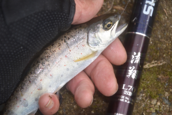 目印が「ピュッ!」と、上流に走ってヒット!数匹の居残り新子アマゴを追加することが出来ました。