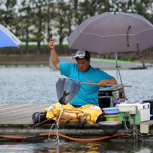 なおこの間、昨年シードの石倉義久選手、戸井田祐一選手、山村慎一選手は予選免除となり、競技外の1号桟橋で決勝の試釣を行いました。