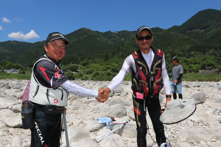 前半は上流に大原選手、下流に廣岡選手が入って競技スタート。