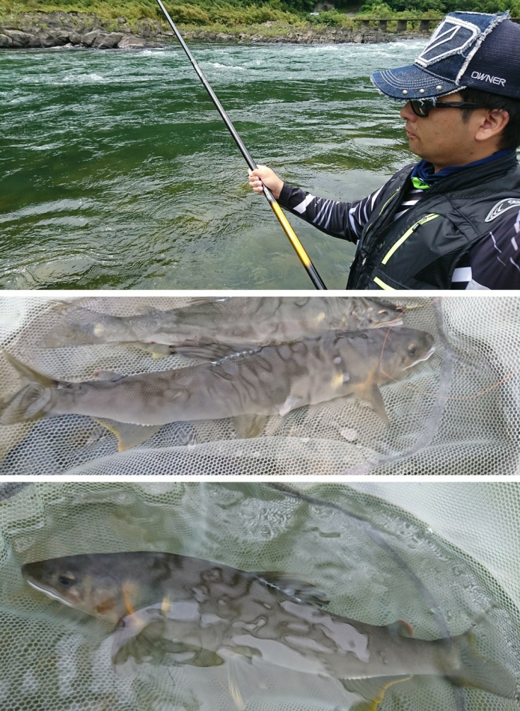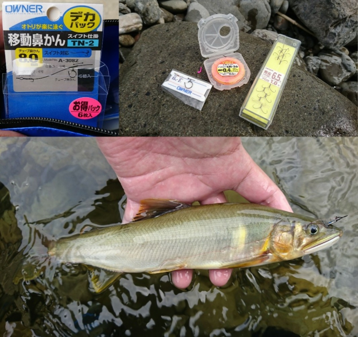 ●使用商品名・号数:デカパック秀尖4本錨フロロ6.5号、完全仕掛フロロ SR-46 0.2号、鮎トップダビⅡ、鮎トップベルト 、ダストボックス Ⅱ