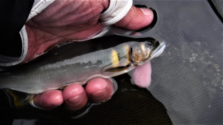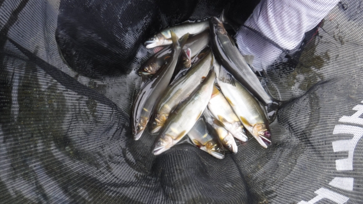 透明度の高い一ッ瀬川で鮎は見えるものの石に付いている鮎は少なくて、群れを作ってサッと上流へ泳いで行くような鮎が多く、なかなか厳しい釣りで解禁日ながら午後3時過ぎまで釣りをして自分13匹、友達は10匹でした。