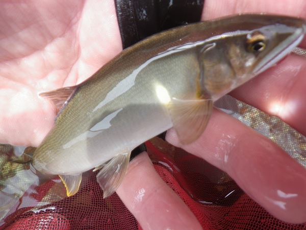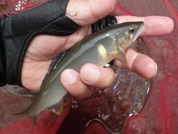 深みのある瀬で20cmの鮎が気持ち良く目印を引き込んでくれました。
