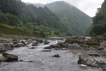 当日は、あいにくの曇り空。やや肌寒さを感じながらも味取のオトリ店「スタディー・K」でオトリを入手し上流部のサオ釣り専用区の長須エリアに到着したのは、午前9時を回っていました。