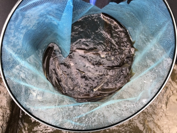 天上道糸FC0.8号、水中糸:メルファ複合メタルMH0.05号、ライトチューブ鼻かん7号、忍サカサ1号、ハリ:妃刃7.5号、ハリス:鮎超硬ハリス・ES1.2号