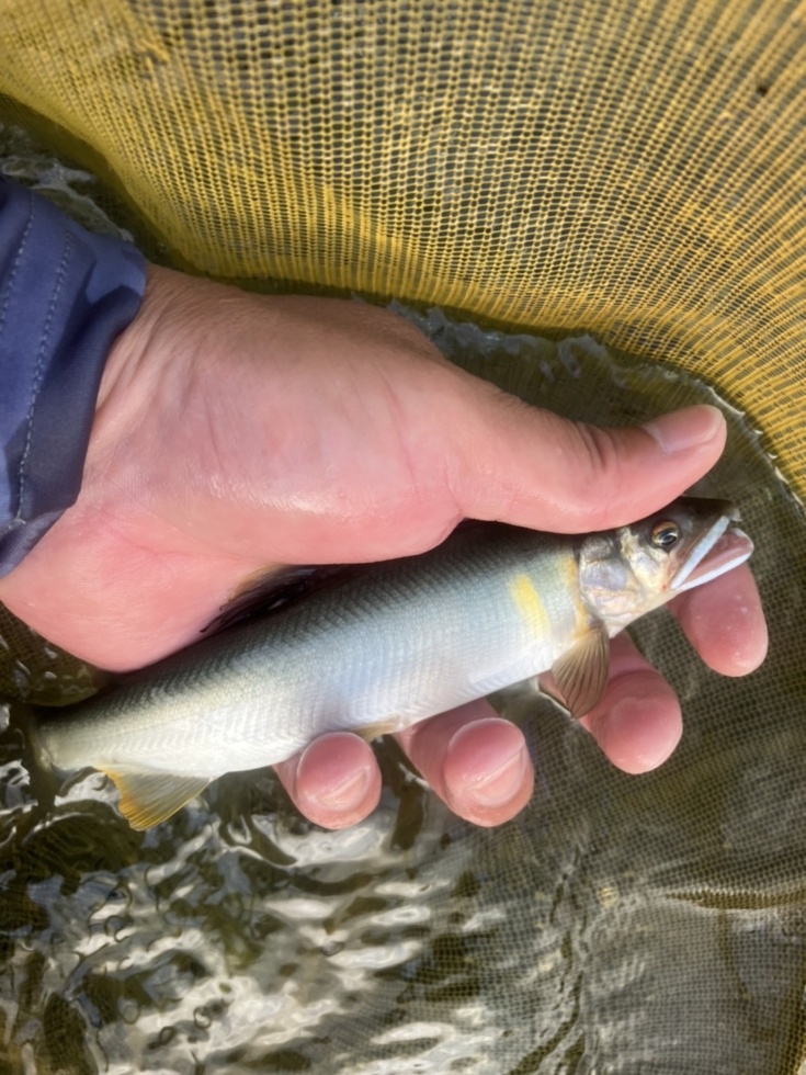 当然ながらオトリ鮎の動きの性質が変わり、また自由に野鮎と馴染ます事で自ずと反応が増えてポツポツながら時速5〜6鮎ペースで掛かります。