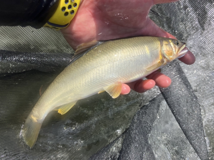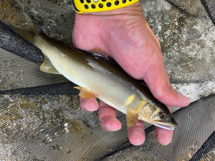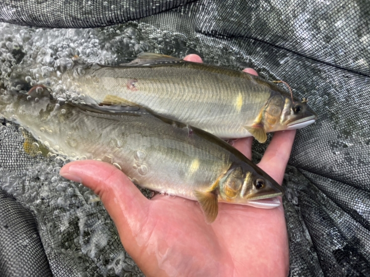 なんとまぁダム下流より2回りも大きな25〜26センチほどの大鮎。