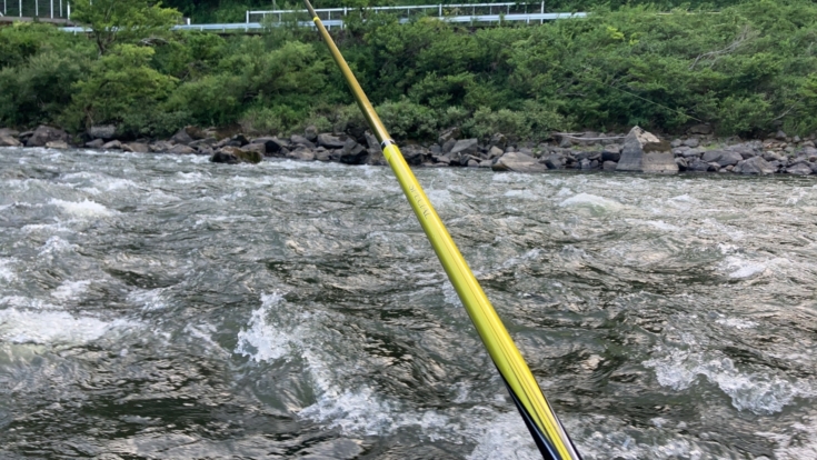 上手くいいポイントに入ると、スコーンと目印が吹っ飛びながら大鮎が掛かってくるのは激流アタックならではの面白さ。