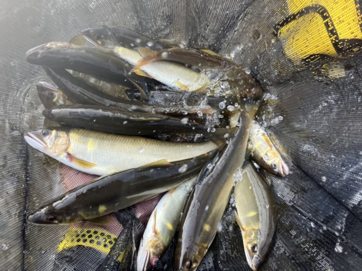 ダム上流ははやくも25〜26センチの大鮎まで育ちポイントもきつい所が多いとのこと。
