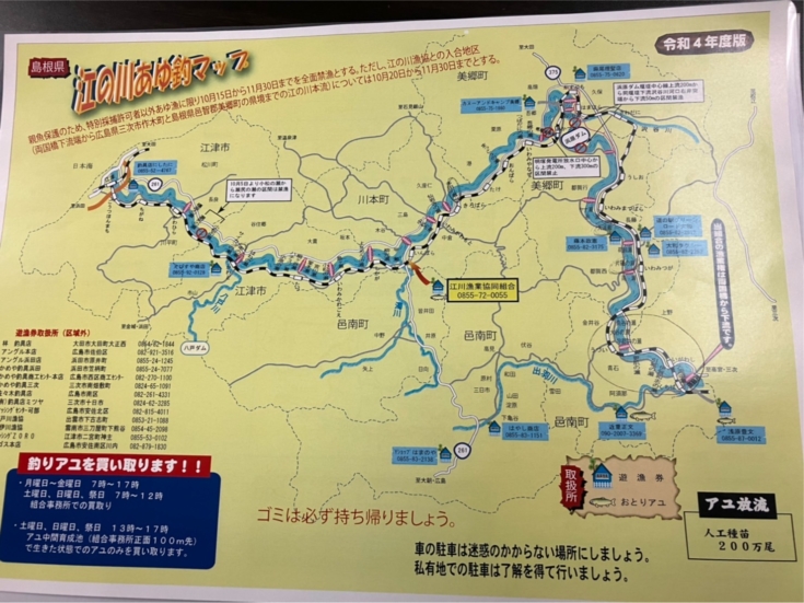 江川漁協管轄では浜原ダムより下流は全域で23センチまでの天然遡上アユの数釣りが楽しめ