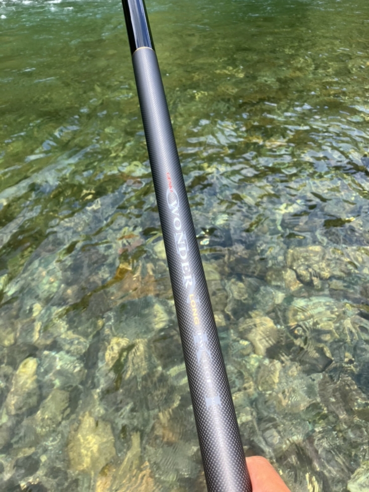 今日は竿抜け狙いで11mの長竿、仕掛はメルファ複合メタルMH0.08号にハリは重めの大鮎狐10号ヤナギで挑みます。