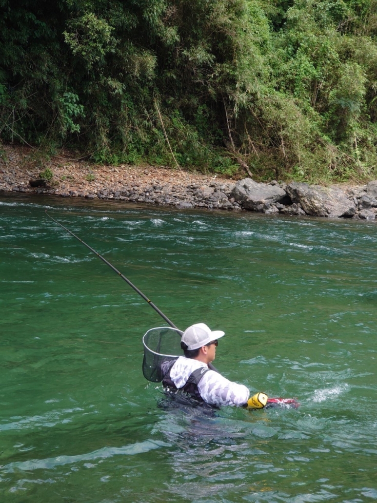 荒瀬に吸い込まれるまでに取り込まないといけないので、返し抜きで対応しますが、親子丼やロケットも多発しましたが納竿まで掛かり続けて1日目終了。