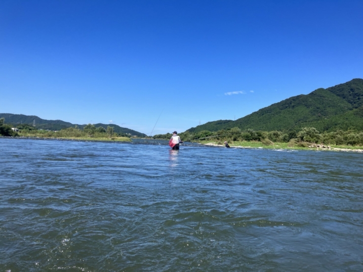 思うように数は伸びませんが、流心で掛けた鮎のパワーはハンパなく、1匹1匹のやりとりが非常にスリリングで楽しい。