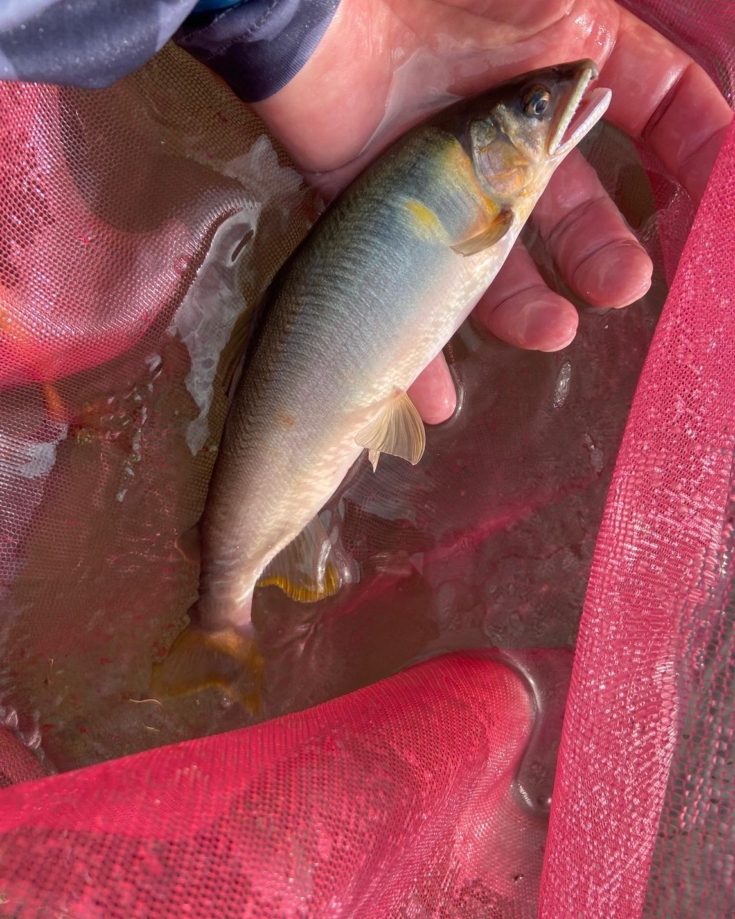 戻った荒瀬では1匹追加したのみでしたが、対岸で一人連発されていた方がいて、自分の釣りよりもそちらを拝見させていただくことを優先。