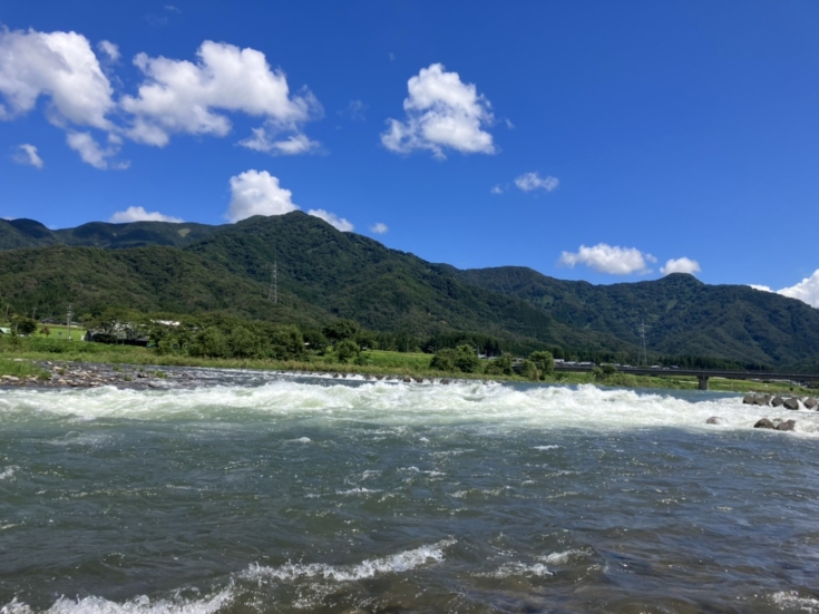 これぞ九頭竜川といわんばかりの急流に川底には大きな石が敷き詰められています。