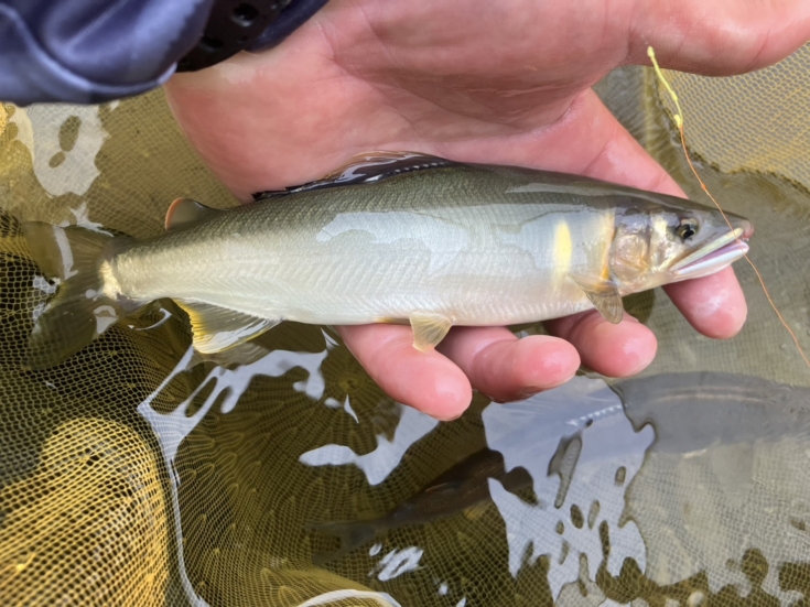 無事にネットインしたのは18〜19センチほどのナイスプロポーションな鮎。