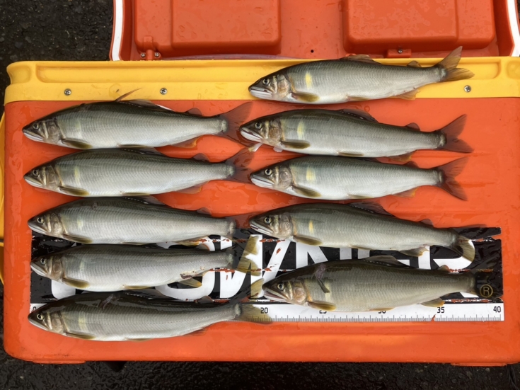 20〜21センチ級の鮎が背掛かりで面白いように入れ掛かりします。
