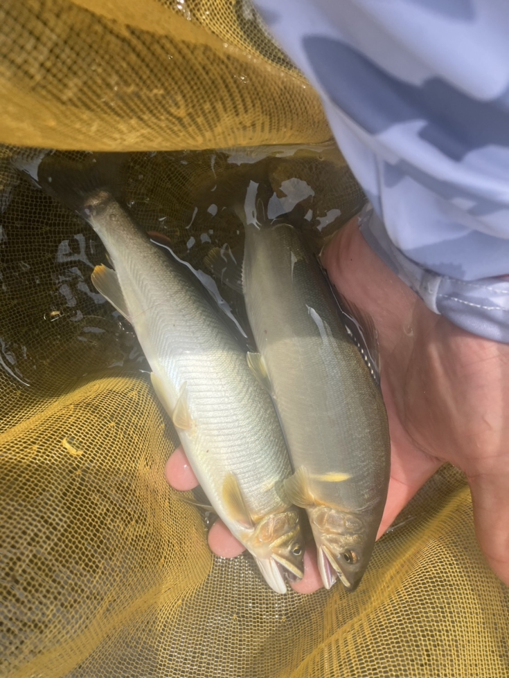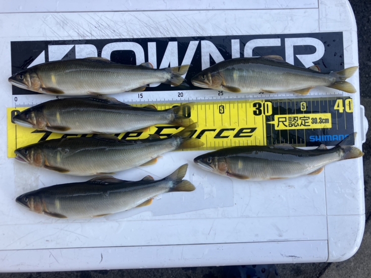 瀬を一通り打ち終わり、最後の朝の苦戦したチャラ瀬を泳がせみると見事に2連発したところで14時ストップフィッシング。