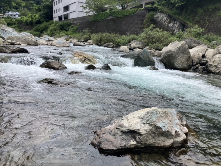 おすすめのポイントを聞くと、ちょうど早明浦ダムの放水が始まったので支流がいいとの事で汗見川へ行くことにしました。