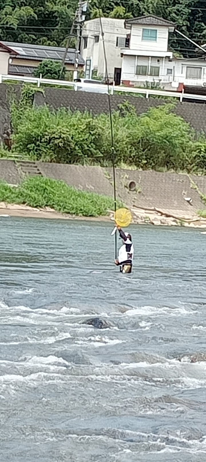 午後からは三隅川本流にて実釣講習会が行われましたが、すぐに27センチの鮎を掛けられ引き寄せで取り込まれてました。