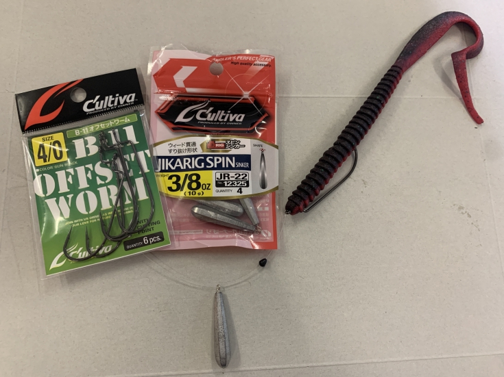 使用したフックは、オフセットワーム。オフセットフックの基本の形状です。