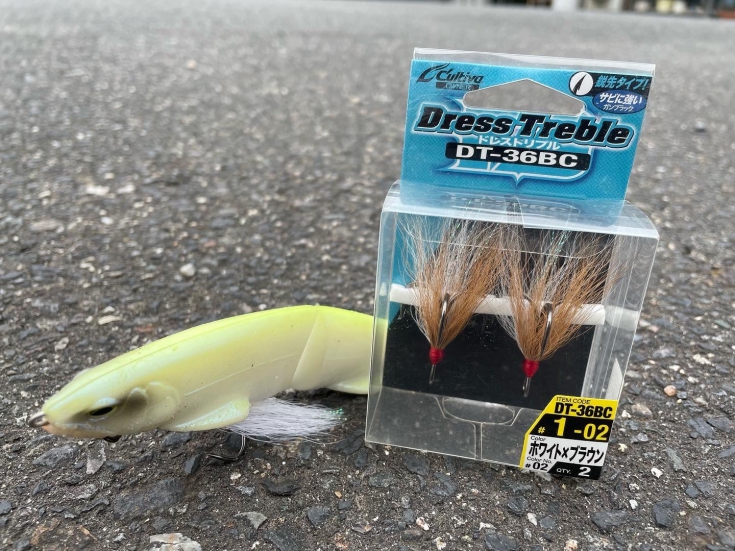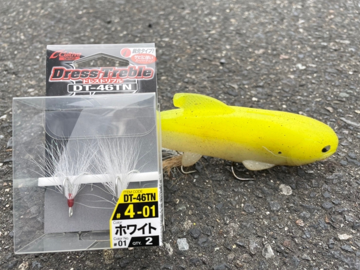さらに、水を吸収しにくい分重みも軽減できて、ルアー自体のバランスが変わる事なく使用できます。(まぁほんのちょっとだけトリプルフックよりは重いですが、、、)