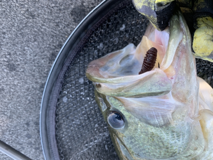 小さめワーム(フレキシーシャッド3)にも軸が太すぎないので瞬貫BC#2は合います。