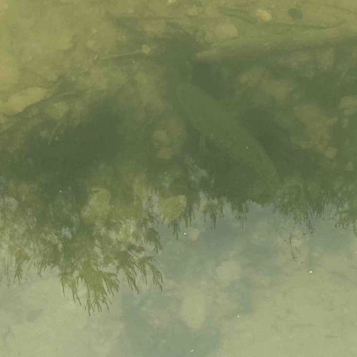 さらに上流へ進むと、見えバスをいたるところで確認できるエリアがあり、ベイトも入っていたので少し粘ることに。