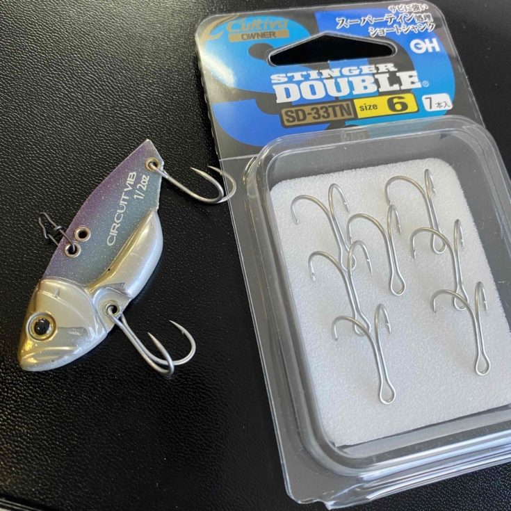 私がよく使用するdepsサーキットバイブ3/8oz,1/2ozには純正だと7番のようですが、ショートシャンクということもありワンサイズアップした6番がベストマッチ!!