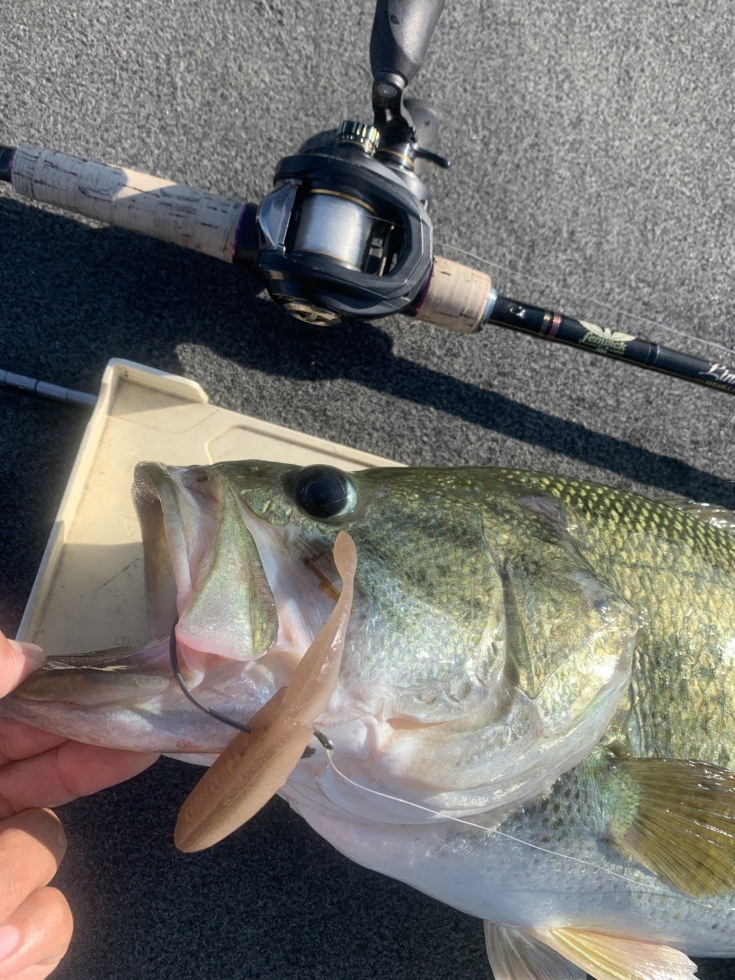 そんなバスを、高比重ワームのノーシンカーでの
