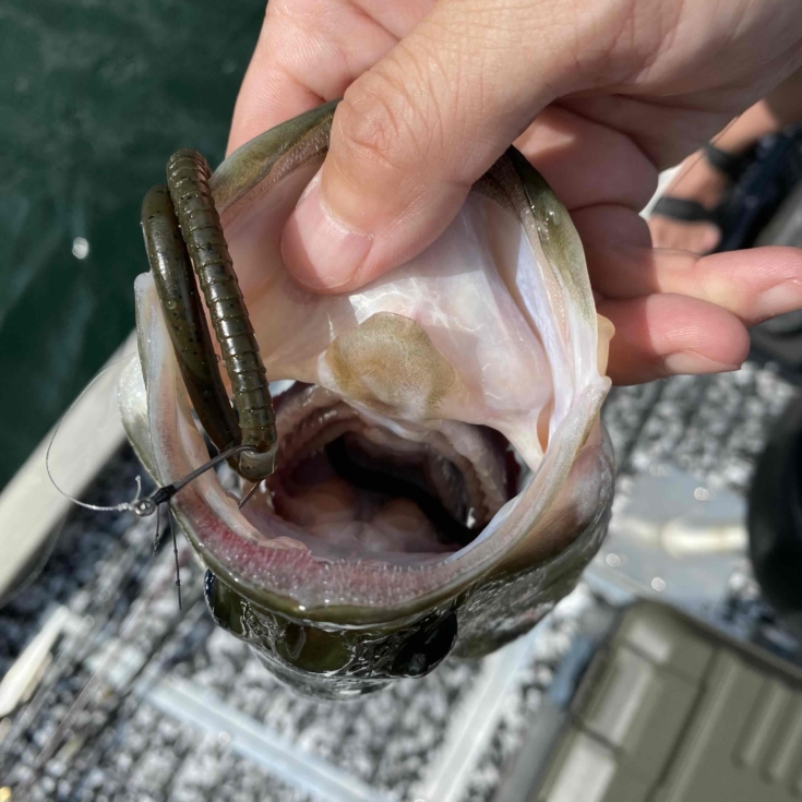サイズを伸ばそうと12インチ・ロングワームのネコリグを投入。