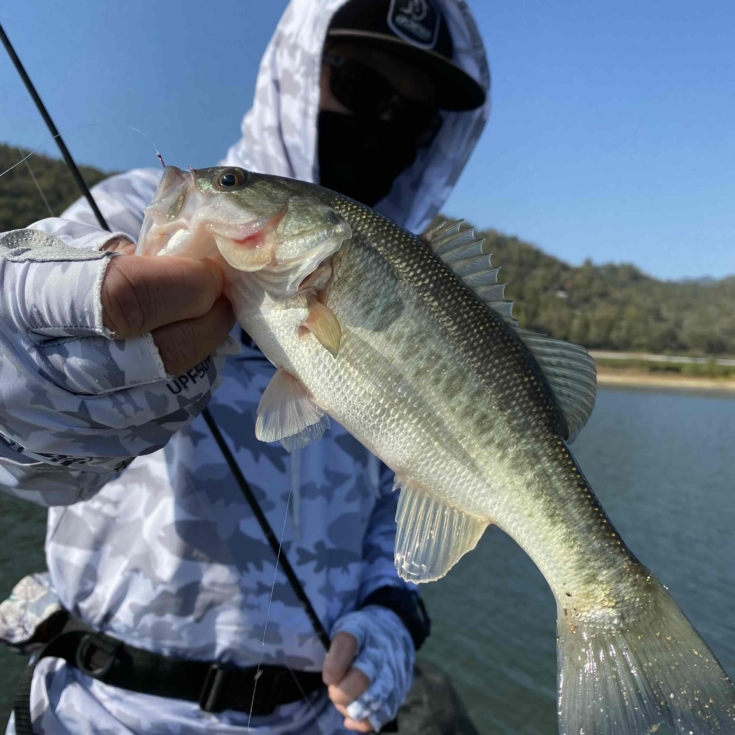 今の青野ダムは魚探で地形を把握、特に、ハンプのふもとから山頂にルアーを追わすイメージ(ハンプの壁に当ててバスがルアーを追い込んでいるというイメージ)を意識していただくとボトムもとりやすく、バイトも多くなっています。