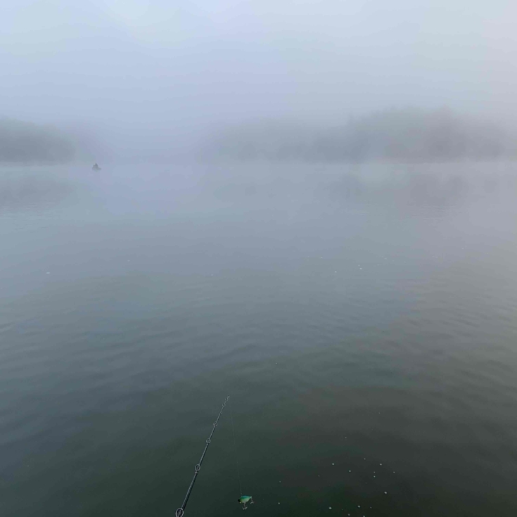 この日の朝はダム全域で濃い霧が発生しており、操船に注意しながらポイントを目指します。
