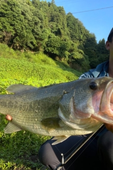 モンスター登場の日吉ダム釣行・釣行日:2022年8月28日(日) ・名前:バス企画担当者 喜多祐樹(製品課) ・ポイント(場所):京都府 日吉ダム 使用商品名・号数(使用鈎・仕掛・ルアーなど):ジャングルワッキーガード#4、...