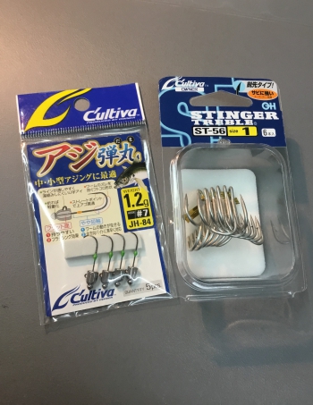 せっかくなので今最も人気が高く気になるみなさんも多い事かと思われるアジングのハリ(ジグヘッド)について少し! アジ専用のジグヘッドとして市場ではやや後発の発売となりました我らがオーナーばりの「アジ弾丸(アジダマ)」と「豆アジ弾丸(マメアジダマ)」。 (考え抜いたデザインなど詳細は是非カタログスペックも合わせてご覧ください。)