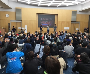今年はありがたいことに、毎年秋に九州は熊本で開催されるスズキ釣りのイベント=シーバスパーティーへお誘いいただきました。秋も深まる週末の午後から各自エントリーカードを持って翌朝までの釣り大会、翌日曜日の午後からは県内の立派な屋内展示会場で我がオーナーばりはもちろん、総合メーカーや全国有数のシーバスメーカー各社がブース出展をし表彰や各種イベントとともに大会参加者や一般の釣り人の皆さんどうしが一日ゆっくり釣りのことやルアーのこと、タックルやスタイルのことなどについて意見を交わし交流するという日。両日とも秋晴れという天候にも恵まれた今回も大盛況となりました。