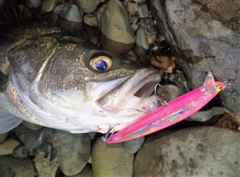 今ではそれこそ超大型スズキは望めなくなった都市部周辺エリアや僕の住む大阪南部エリアですが、「関西スズキ釣り発祥場所のひとつ」として今も僕はその王道を貫いています「風表のミノーイングスズキ」。だから僕は未だに特に秋冬に釣るスズキはシーバスとは呼ばずあくまで「スズキ釣り」。今年も秋が深まりその後海が荒れだすと「僕のマルスズキ釣り」も本格始動。濁れば川へ!荒れればサーフや小磯へ!僕や仲間たちの最も心動く季節。春秋の日中の磯のヒラスズキ釣りと合わせてこの「秋冬のマルスズキ釣り」は僕には切っても切り離せない釣り。今現在主流となっている港湾や河川を主体とした釣り(僕は風裏の釣りと呼んでいます。)そしてそれ以前のスズキ釣りを称した元祖ミノープラッギングの世界=「風表の釣り」。どちらをするにせよ今回の熊本での話からもスズキ釣り(シーバス)についてだけは「ただただ釣るだけの釣りではない」と言うことだけは皆さんにもお分かりいただけたかも知れません? 「狙った魚にどうかかわるか?」カッコよすぎるセリフの様ではありますが一度でも地磯のヒラスズキやこの秋冬の大型マルスズキの釣りを経験すればおのずとわかるはずです。とてつもなく記憶に残る釣り、一枚の写真が大きく物語る釣り…。「自分の信念を貫く釣り」、「これで釣りたい」とルアーを選び「こんな風に釣りたい」とタックやウェアを選び心の底から狙った一匹と満足する釣り。釣りあげた瞬間に体が震える釣り!