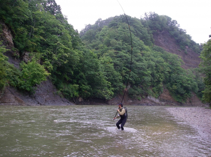 今から数年前の晩夏、道東のとある川へ遡りアメマスを釣りに行った時のこと。その日は前夜に降った豪雨の影響で、川が増水しコーヒーブラウンのような濁流が流れていた。