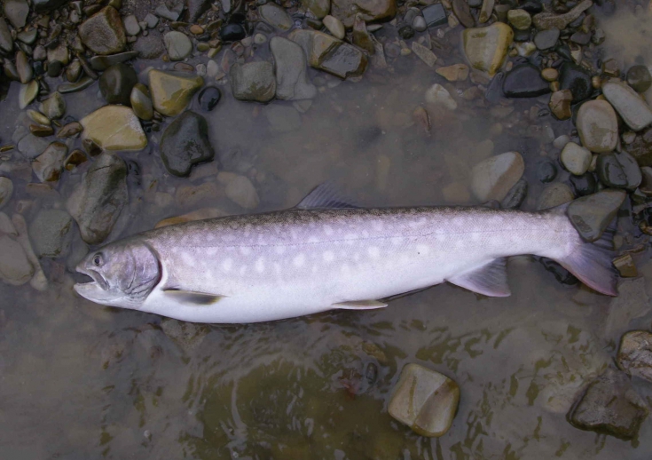 この日、私が釣った最大サイズ、六十センチのアメマス。大型のアメマスだが、友人が釣ったのは七十センチの超大物。本来なら私が釣る筈のポイントだっただけに、悔いが残る。