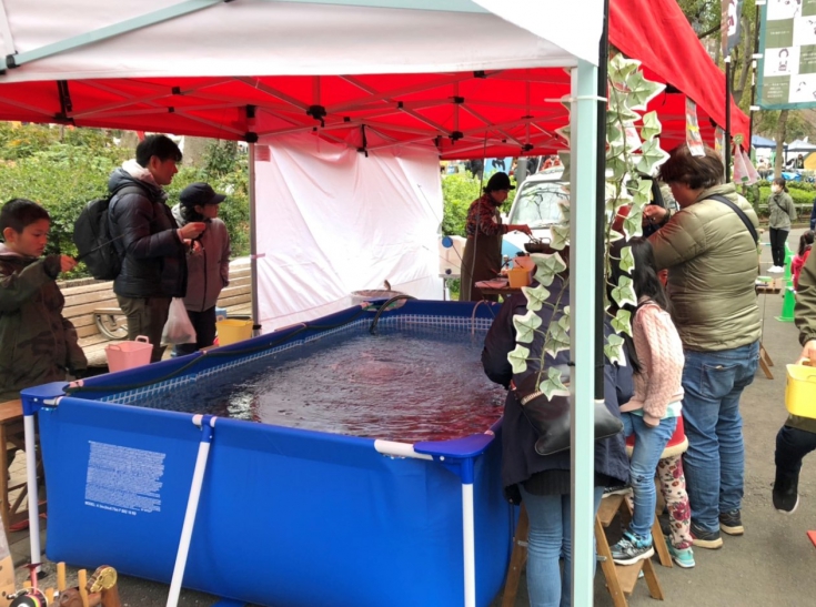 その終始にぎわう釣り堀を中心にパーク内を通りがかった方々やご近所からお散歩中の皆さんなど僕たちのブースにもたくさんの人たちが集まって来てくれて楽しく忙しい2日間となった。